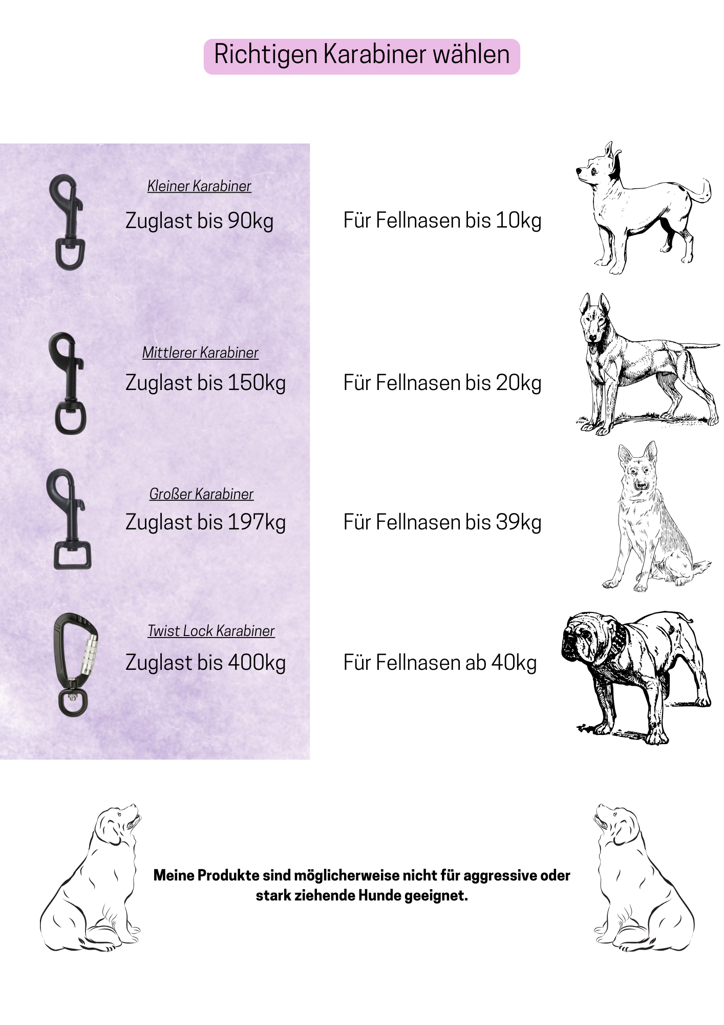 Meine Produkte sind möglicherweise nicht für aggressive oder stark ziehende Hunde geeignet.